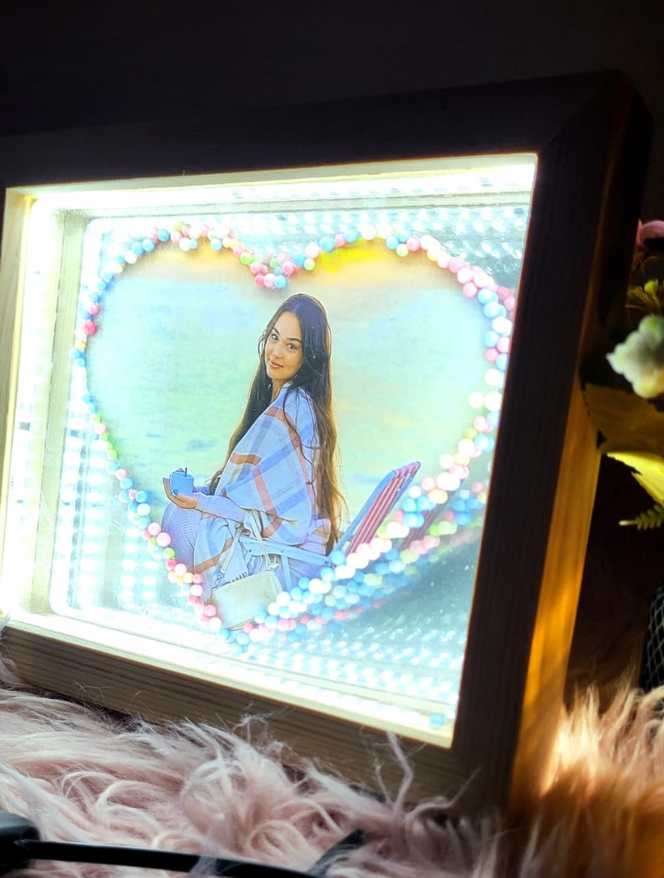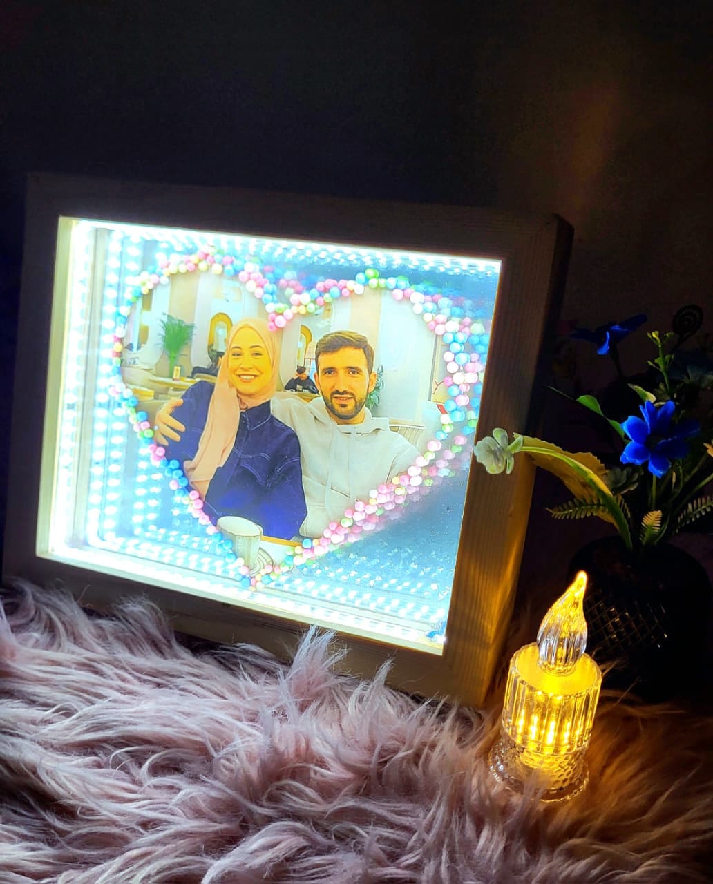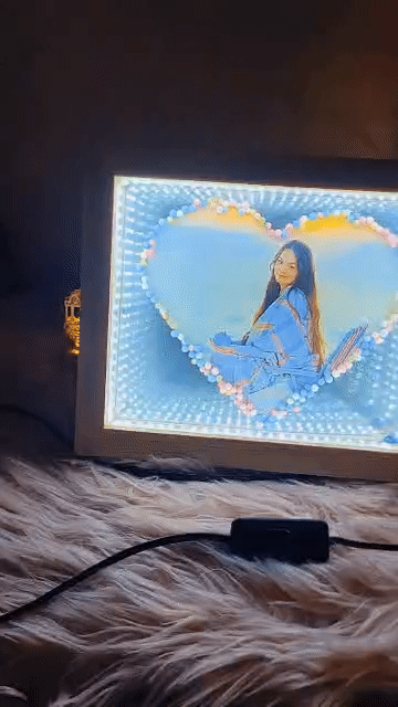 الأفضل لأغراض الهدايا وديكور غرفة النوم! المنتج في الأصل عبارة عن مرآة، تتحول إلى إطار صور سحري جميل عند إضاءتها! يمكنك ببساطة فتح الجزء الخلفي من الإطار ووضع صورتك المفضلة فيه.